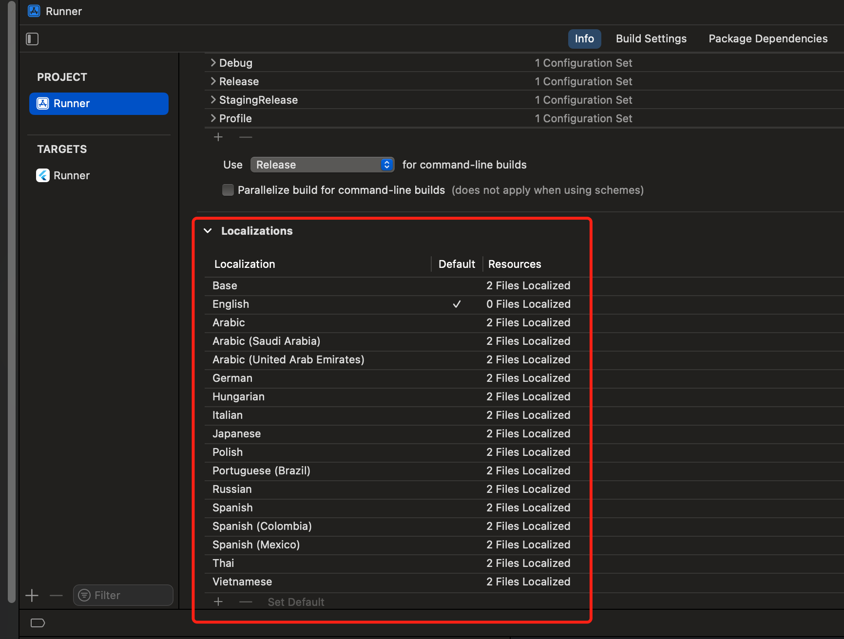 Firework SDK widgets are based on native views. Thus, as depicted in the screenshot below, you must add all the language localizations you wish to support to the iOS project, as required by Apple.