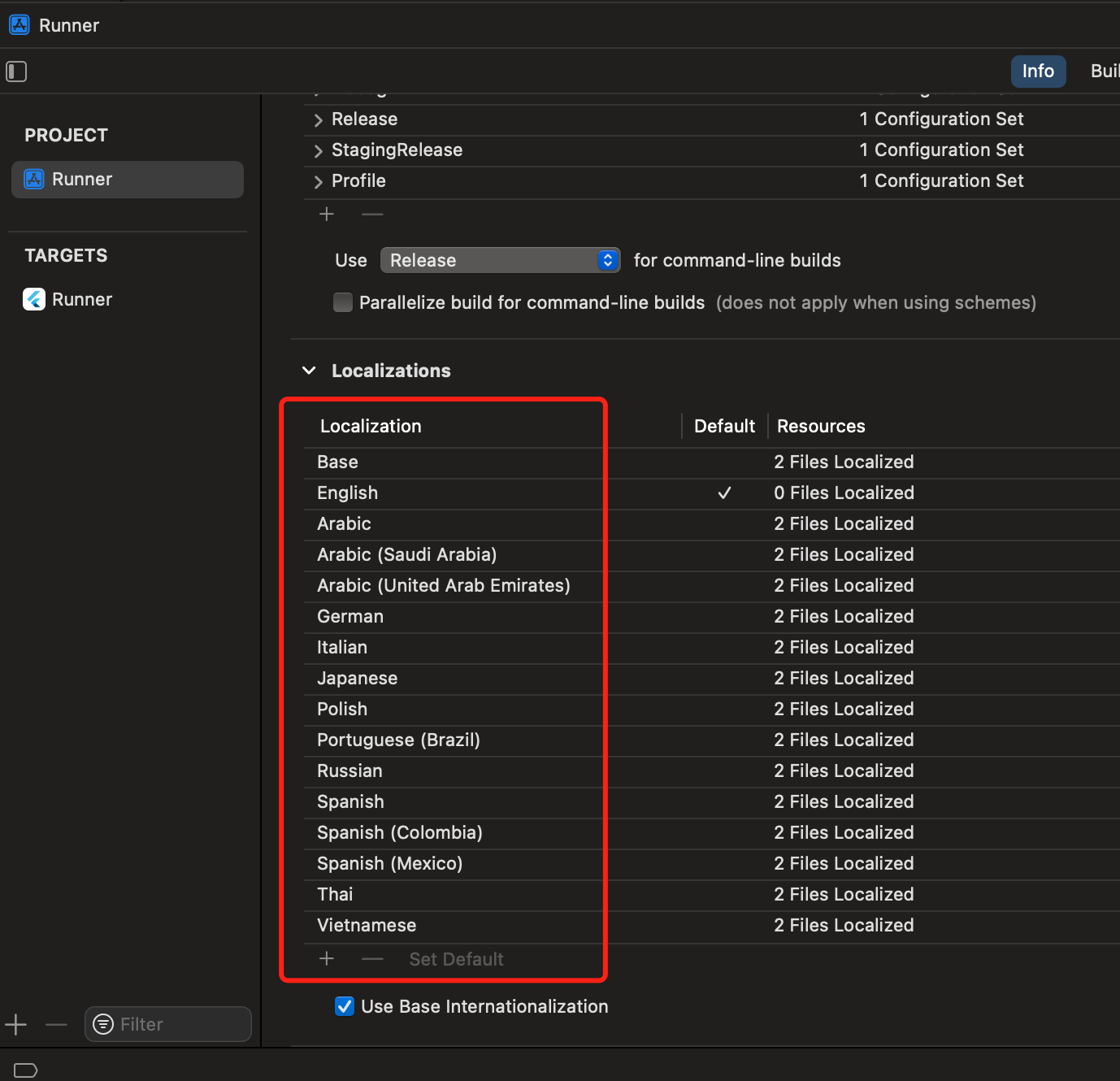 Firework SDK widgets are based on native views. Hence, as shown in the screenshot below, you need to add the localizations you want to support to the iOS project, which is required by iOS framework.