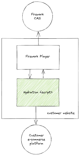 Customers can write a hydration script using the **Firework's Shopping API** to enhance the shopping capabilities of the Firework player. The hydration script will bridge the e-commerce platform and the player, allowing the player to show the latest product information and sync your website cart with the player cart.