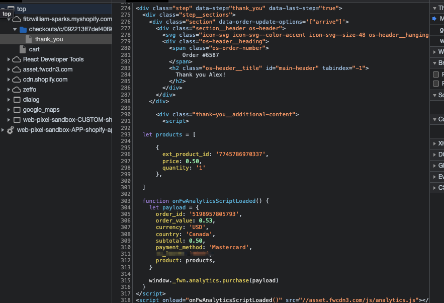 4. Find the part of the DOM which contains our tracking code snippet
